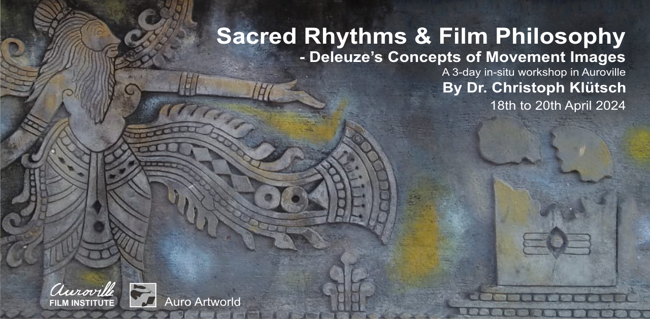 A 3-day in-situ workshop in Auroville by Dr. Christoph Klütsch(as a part Open Space Documentary Arts Programme)18th to 20th April 2024 OVERVIEW This 3-Day Workshop Exploring Gilles Deleuze’s Film Philosophy will be an immersive journey through the concepts of Gilles Deleuze’s film philosophy, with a connection to the Irumbai Temple and its cinematic parallels. We will … Continue reading Sacred Rhythms & Film Philosophy: Deleuze’s Concepts of Movement Images